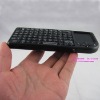Mini Wireless Keyboard Integration design of keyboard mouse. Built in Real QWERTY full-function keyboard . With media control keys. With a real notebook touchpad. With a wireless laser pointer. Crystal keycap to be wearable against use . Charming in looking , portable to carry. 2.4G Hz RF or Bluetooth radio transmission. These are real photograph,not any modify: Funciton keys sketch map: Laser photograph: Mini bring forth: USB receive adapter(2.4G): ON/OFF,USB charge: overview This product is a combo of QWERTY keyboard & touch Pad & Presenter . With 2.4G RF or Bluetooth wireless transmission, and in mini size. Dimension: 151mm*59mm*12.5mm. This product is not only a usual wireless keyboard input, but also with multi- media control keys, wireless PC gaming control keys, It has built-in programmable smart touchpad-the touchpad which can be used in horizontal and vertical gesture, with power indicator, RF signal indicator, Caps lock indicator or low-voltage reminder indicator, keypad backlight to facilitate night operations, It also has a built-in laser pointer, For facilitate lectures , teaching, distance instruction. . Back lits for using in poor lighting place With 26 PCS dazzling bright LED lights to help when using in poor lighting environments. .2.4G wireless radio transmission and USB receiver 2.4 G Hz RF radio and USB receiver allow you to transmit with other Device with 30 meters distance without cable link. .Bluetooth wireless transmission If you choose Bluetooth transmission, you can communicate with those Devices which are built-in Bluetooth in the range around you. .The touchpad can be used in horizontal and vertical Use in horizontal or vertical at your pleasure! . innovative design of the navigaion keys Smart located the direction control keys in order to be used as joystick control . make you feel the thrill of playing fame by wireless device. . windows Media Control Whether you are sitting in the sofa, or a comfortable bed. Multimedia Wireless control, allows you to enjoy the pleasure of enjoying multimedia. .Built-in rechargeable more staying power lithium-ion battery Advanced lithium-ion battery shorts time for charging but with longer usage time ,endurable for up to 1 month. .Mini style, classic style Lines of beautiful, stylish , elegance , simplicity is not simple. . Built-in wireless laser pointer. e-pointer Key board, mouse, presenter trinity .three-dimensional presentation .more vivid ! Have a real notebook Touchpad Use of advanced capacitive sensing technology. Comparable to a real Notebook touchpad. . Real QWERTY full –function mini keyboard Delicate appcarance, clever keyboard layout, a real mini-QWERT full function keyboard. Main specification Dimension: 151mm*59mm*12.5mm/ 6’*2.4’*0.5’ Weight : 100g / 0.22 pound Suitable temperature : -10°C + 55°C Battery type : Built-in lithium –ion battery Standby time :500-700 hours Operation range: up to 30 meters Modulation: RF using DSSS mode ,a stronger anti-jamming capability Transmit power: Max + 4 dBm Operating voltage : 3.3 V Operating current :< 80 mA Charge voltage : 4.2 V – 5.05 V Charge current :< 300 mA Sleep current: 1 mA